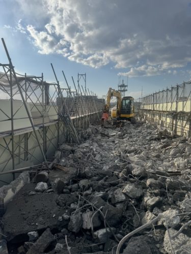 新築工事の際、作業員が安全で作業しやすい足場を組み立てます。工期に伴い、設置期間も長くなるため点検や不備の修正などを随時おこない、常に安全を確保しています。スピーディーで効率の良い先行足場にも対応しています。